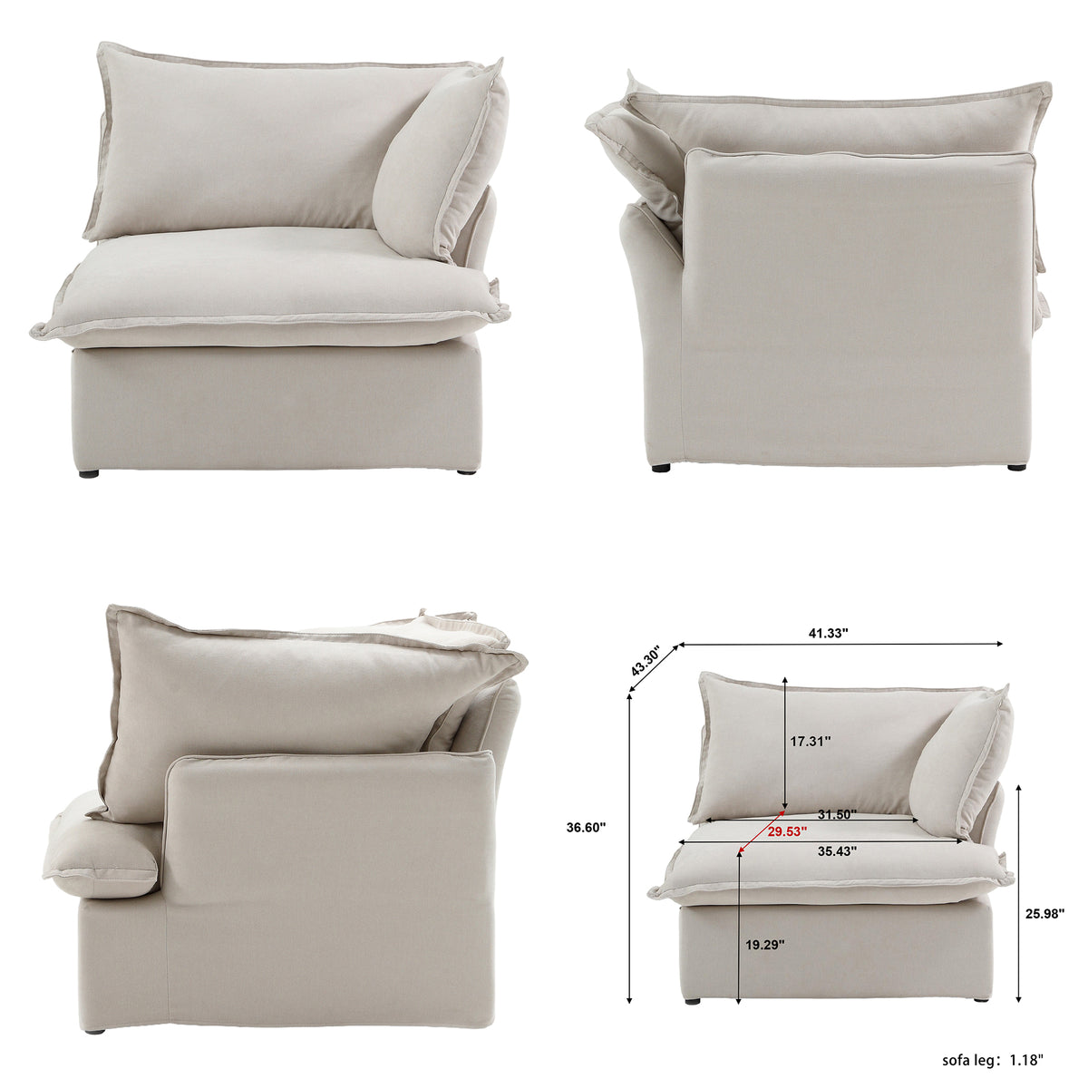 • Chaise Width (right side): 40.16 inches